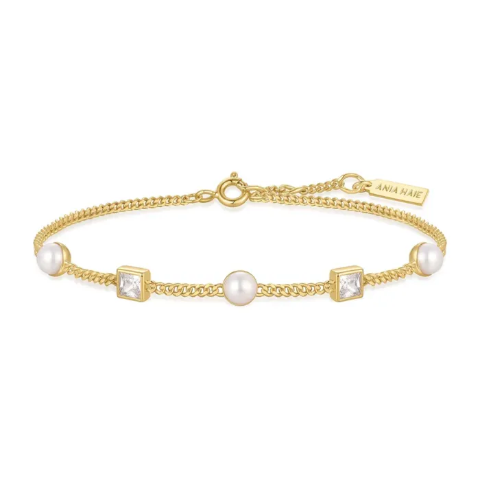 Ania Haie Cube And Pearl Station Armband Guldpläterad Silver B069-02G