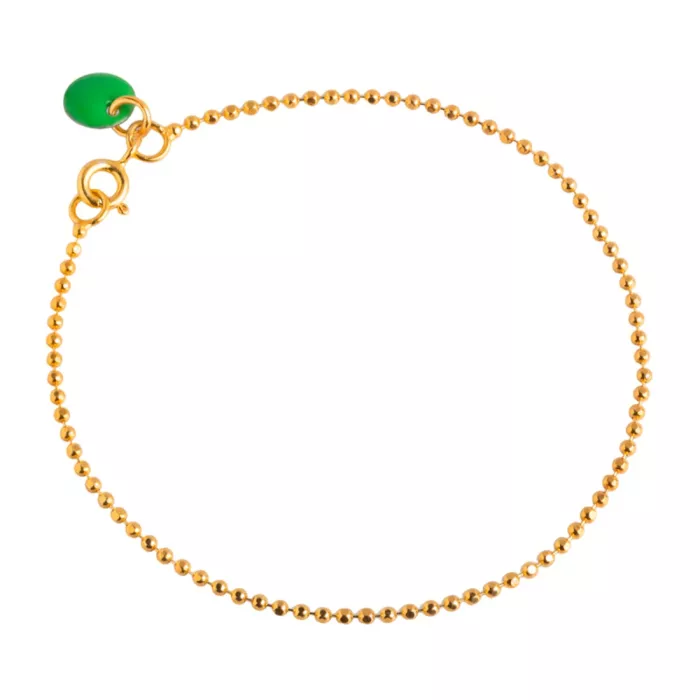 Enamel Ball Chain Green Armband 18 kt. Guldpläterad Silver B16G-Green