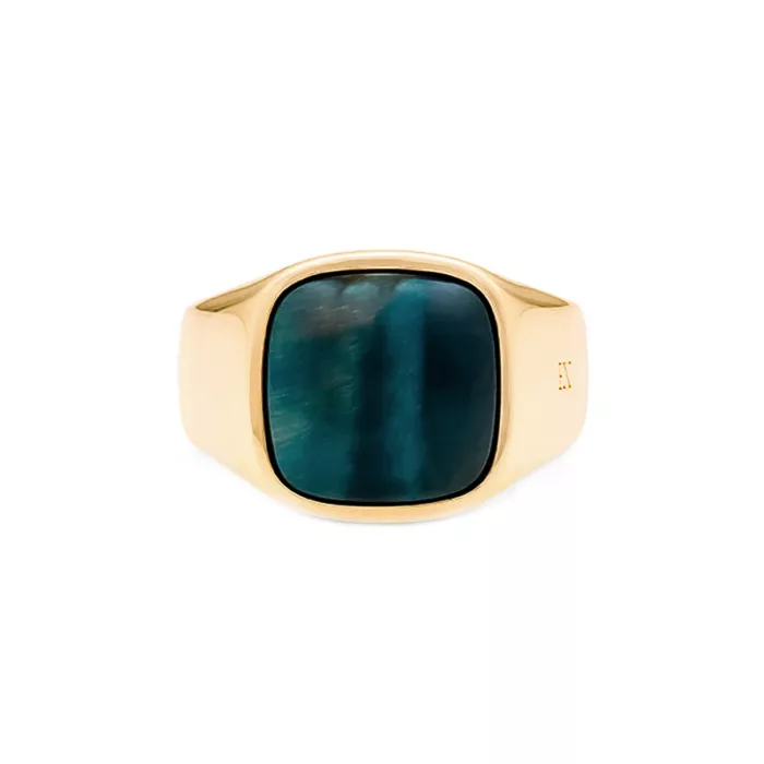 IX Studios Cushion Signet Hawks Eye Ring 22 kt. Guldpläterad Silver DMN0282GDHE