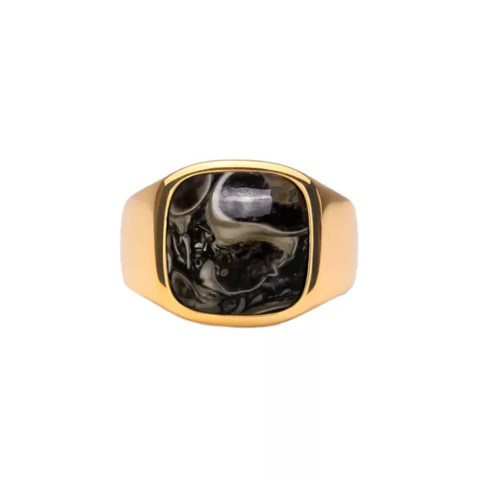 IX Studios Turtle Agate Signet Ring 22 kt. Guldpläterad Silver DMN0282GDTA