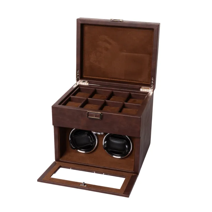 Piero Lazzari 8+2 Watch Winder 2 Klockor Brun Läder PL1127