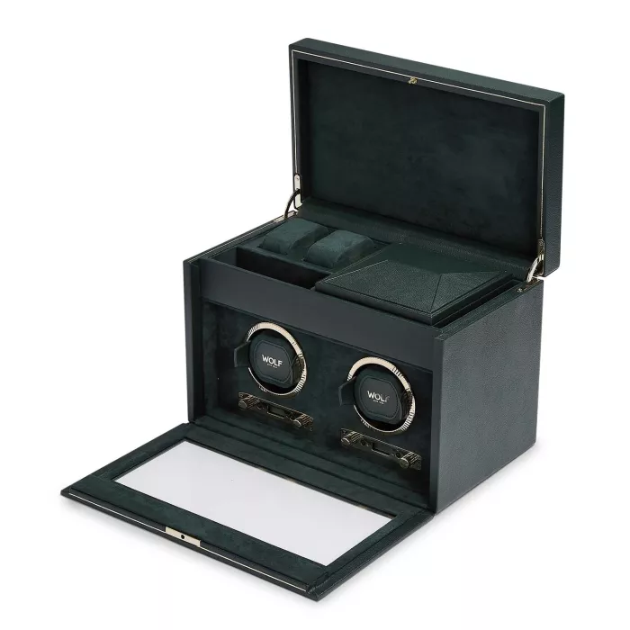 Wolf British Racing Green Watch Winder 2 Klockor Grön Konstläder 792241